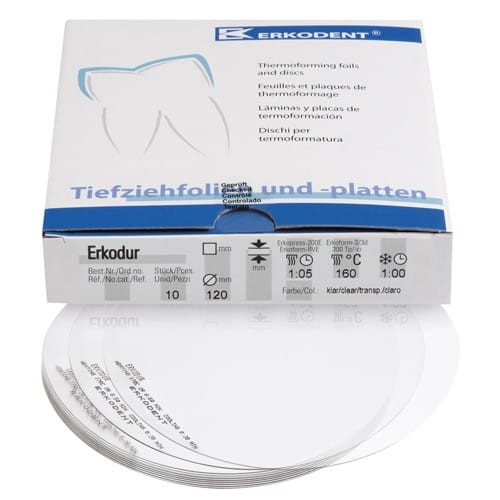 Folia twardo-elastyczne do wykonywania szyn zgryzowych, miniplastycznych, stabilizacyjnych, szyn na bruksizm, płyt opatrunkowych, kształtek odlewanych, szablonów do nawiercania, planowania i szablonów rentgenowskich.