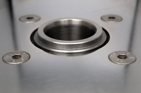 - trapezowy kształt gniazda wlewowego dodatkowo uszczelnia tuleję z puszką podczas wtrysku.